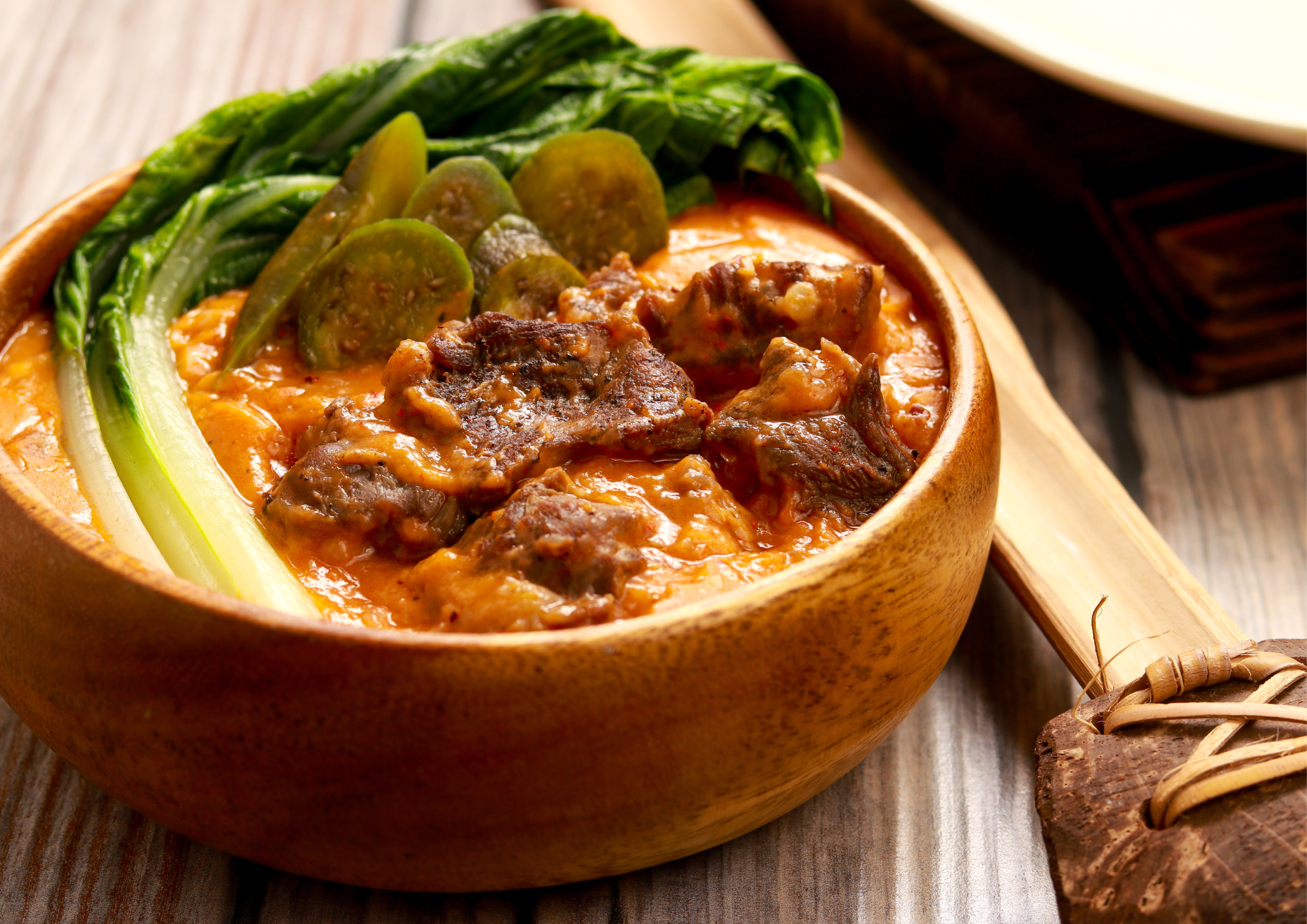 Tender oxtail slowly simmered to perfection until melt-in-your-mouth soft, paired with fresh, crisp vegetables like eggplant, string beans, and banana blossoms. All of this is coated in a rich, creamy peanut sauce that’s both savory and slightly nutty, delivering the comforting flavors of a true Filipino classic. Traditionally served with a side of salty bagoong (fermented shrimp paste) to balance the richness, this dish is perfect for family meals, celebrations, or any time you crave the authentic taste of home.
